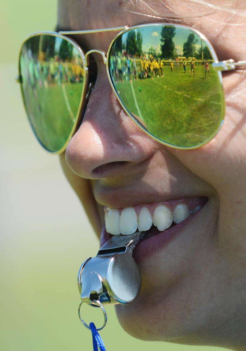 Cameron Szwec, 10, who plays for a Hoffman Estates Park District dodgeball team, deflects an opponent's throw during the Dodgeball Days Outdoor Youth National Championships Friday at Olympic Park in Schaumburg. Play continues today for adults. SEE MORE PHOTOS ON PAGE 9.