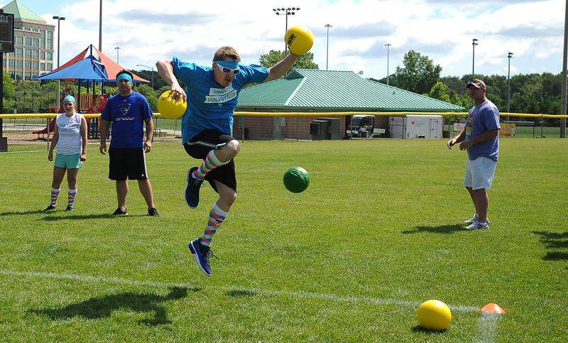 The National Amateur Dodgeball Association's Dodgeball Days championship event returned to Olympic Park in Schaumburg with Rob Burrell of South Elgin of the Top Golf team trying his best to stay in the game.