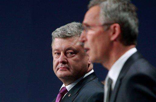 NATO Secretary General Jens Stoltenberg and Ukrainian President Petro Poroshenko attend a news conference at the NATO summit in Warsaw, Poland, Saturday, July 9, 2016. U.S. President Barack Obama and other NATO leaders have begun the second day of a summit meeting in Warsaw that's expected to lead to decisions about Afghanistan, the central Mediterranean and Iraq. (AP Photo/Czarek Sokolowski) The Associated Press