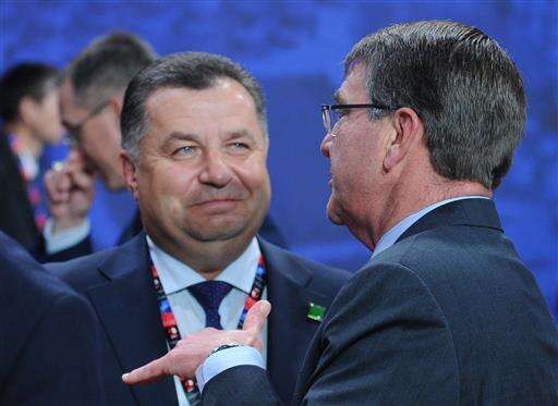 U.S. Secretary of Defense Ash Carter, right, talks with his Ukrainian counterpart Stepan Polotorak prior to the defense ministers session during the second day of the NATO Summit, in Warsaw, Poland, Saturday, July 9, 2016. US President Barack Obama and leaders of the 27 other NATO countries are taking decisions in Warsaw on how to deal with a resurgent Russia, violent extremist organizations like Islamic State group, attacks in cyberspace and other menaces to allies' security. (AP Photo/Alik Keplicz) The Associated Press