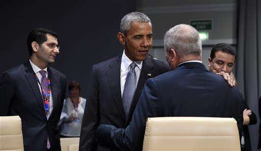 President Barack Obama talks with Jordanian Foreign Minister Nasser Judeh as he arrives for the start of a session of the North Atlantic Council at PGE National Stadium in Warsaw, Poland, Saturday, July 9, 2016. (AP Photo/Susan Walsh) The Associated Press