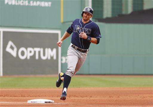 Tampa Bay Rays' Brad Miller rounds the bases after hitting a home run against the Boston Red Sox during the first inning of a baseball game at Fenway Park in Boston, Saturday, July 9, 2016. (AP Photo/Winslow Townson) The Associated Press