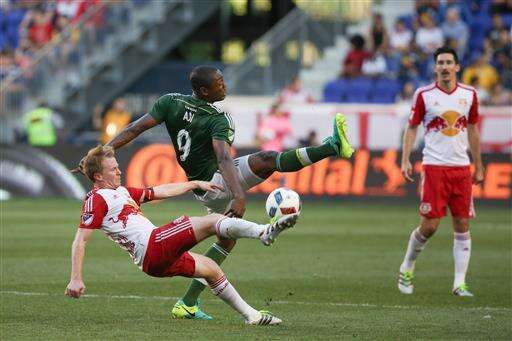 In Harrison, New Jersey, Jake Gleeson had four saves, including a deflection in stoppage time, to help the Portland Timbers hold on for a 0-0 tie with the New York Red Bulls and extend their unbeaten streak to seven games.