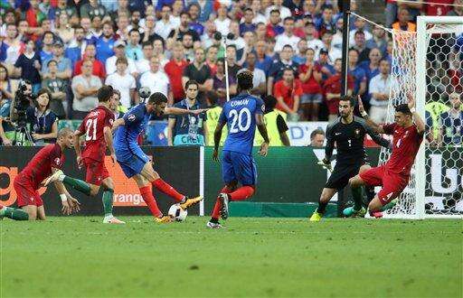 France dominated early and Antoine Griezmann came close to adding to his tournament-leading six goals with a looping header that Rui Patricio athletically tipped over his bar.