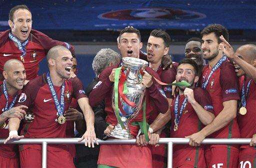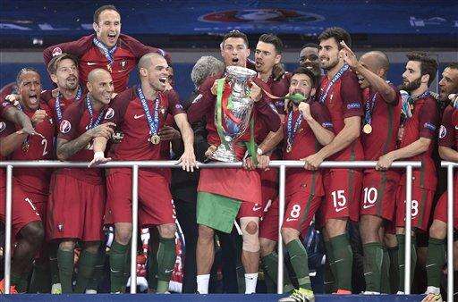 The Latest: Medals and the trophy for Portugal players