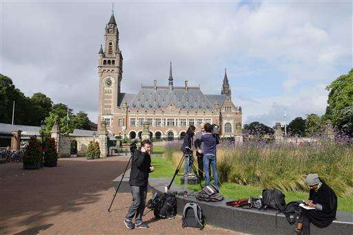 Journalists gather outside the Peace Palace in The Hague, Netherlands, on Tuesday, July 12, 2016, ahead of a ruling by the Permanent Court of Arbitration (PCA) on the dispute between China and the Philippines over the South China Sea. China has intensified the drumbeat of its opposition to an international tribunal's ruling expected Tuesday that could threaten its expansive claims in the South China Sea. (AP Photo/Mike Corder) The Associated Press