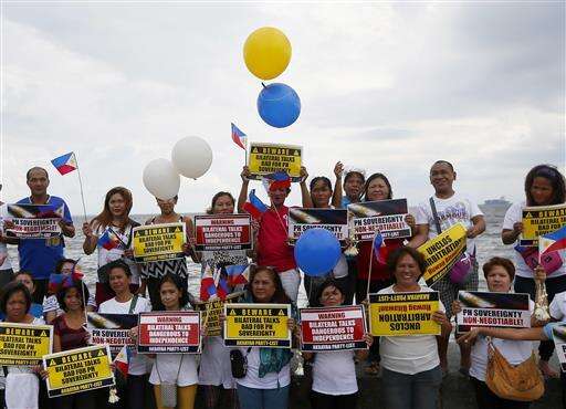 One person held up a poster that said: "Philippine sovereignty, non-negotiable."