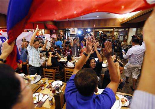 Dozens of Filipinos rallying in Manila jumped in joy, wept and waved Philippine flags after news that an international tribunal had sided with the Philippines against China's sea claims.