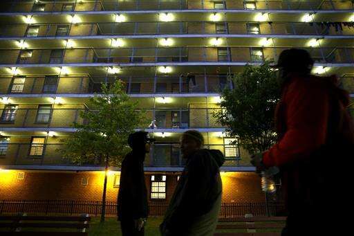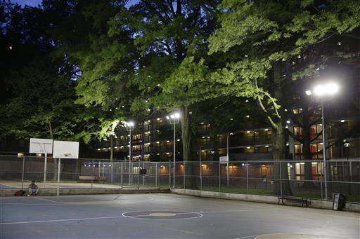 Lights illuminate a basketball court at the Stapleton Houses low-income housing complex in the Staten Island borough of New York, Wednesday, June 8, 2016. (AP Photo/Seth Wenig)