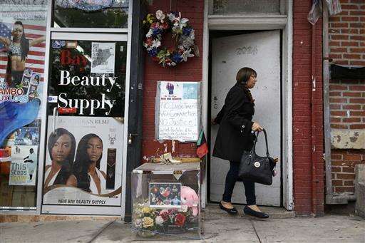 This Tuesday, May 24, 2016 photo shows a memorial at the site of Eric Garner's death in the Staten Island borough of New York. The 43-year-old black man died in July 2014 after a white police officer placed him in a chokehold during an arrest for selling loose cigarettes. A grand jury declined to indict the officer who put Garner in the hold or any of the other officers involved in the arrest. The city agreed to pay a $5.9 million civil settlement. (AP Photo/Seth Wenig)