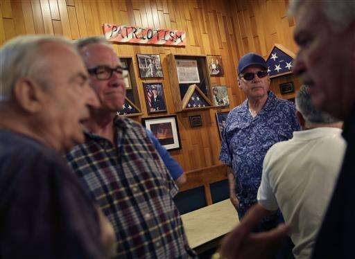 ADVANCE FOR USE THURSDAY, JULY 14, 2016 AND THEREAFTER-Members of the NYC Verrazano 10-13 Association, made up of retired police officers, gather during a meeting in the Staten Island borough of New York, Wednesday, June 15, 2016. Some of the members lament today's policing climate, even as they wax about the old days. Combine officers lacking street savvy and people in minority neighborhoods who mistrust them and policing is much tougher, says Richard Commesso, a retired detective. He credits his long-ago partner, a black cop, with schooling him to the ways of the neighborhoods they patrolled. (AP Photo/Seth Wenig)