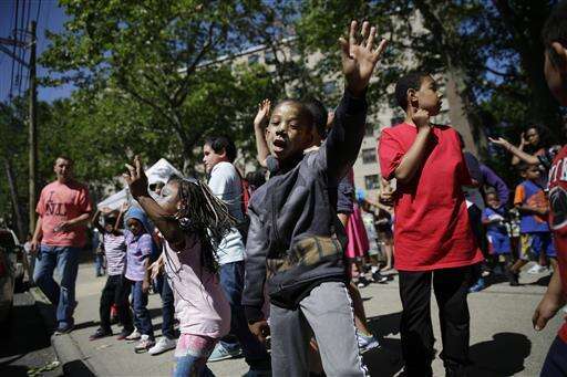 Children dance during an event in front of the Richmond Terrace housing in the Staten Island borough of New York, Thursday, June 9, 2016. On an island of 475,000 that is 75 percent white and mostly suburban, the North Shoreâs comparatively dense neighborhoods are home to nearly all of the borough's African-Americans, enclaves of Liberian, Mexican, and Sri Lankan immigrants. (AP Photo/Seth Wenig)