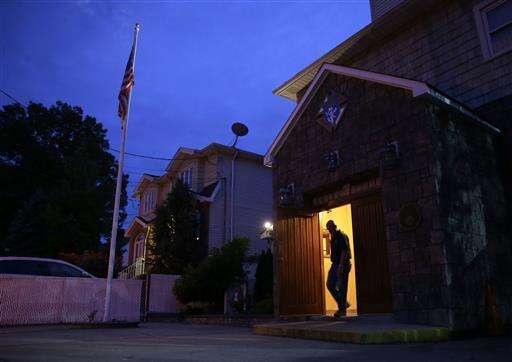 A U.S. flag flies outside a meeting of the NYC Verrezano 10-13 Association in the Staten Island borough of New York, Wednesday, June 15, 2016. Some of the members of the group of retired police officers lament today's policing climate, even as they wax about the old days. Combine officers lacking street savvy and people in minority neighborhoods who mistrust them and policing is much tougher, says Richard Commesso, a retired detective. He credits his long-ago partner, a black cop, with schooling him to the ways of the neighborhoods they patrolled. (AP Photo/Seth Wenig)