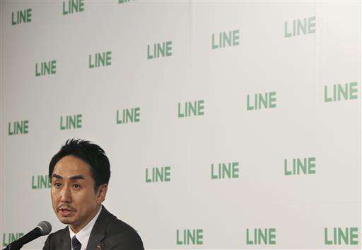 Line Corp. President and CEO Takeshi Idezawa speaks during a press conference in Tokyo, Friday, July 15, 2016. Line Corp.'s shares surged in its debut on the Tokyo Stock Exchange, following its initial public offering in New York, as investors cashed in on the popular Japanese messaging app that features emoticons. Line, which offers a popular mobile message and online voice-call service, rose Friday above its IPO price of 3,300 yen, settling at 4,345 yen. It cost $41.58 in New York on Thursday. (AP Photo/Koji Sasahara) The Associated Press
