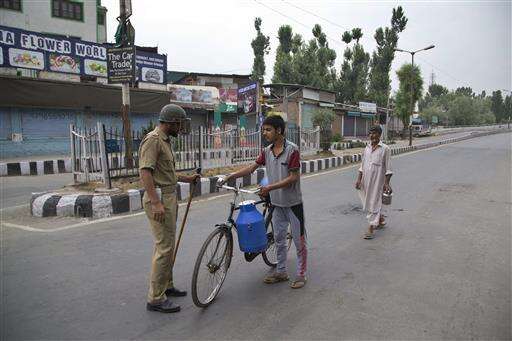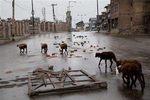 SRINAGAR, India (AP) - Widespread anti-India protests and clashes erupted in dozens of places in divided Kashmir, even as authorities prevented tens of thousands of people from offering Friday prayers in big mosques with a lockdown in place for a seventh straight day.