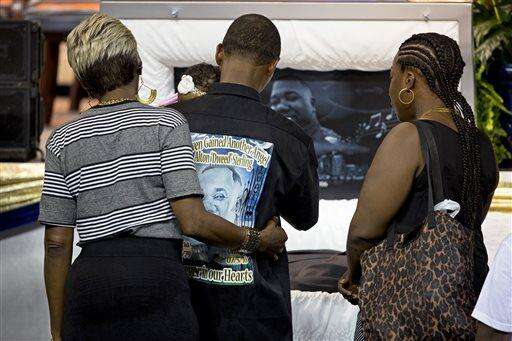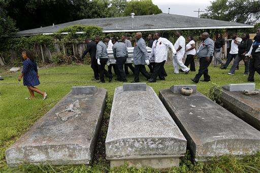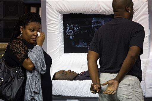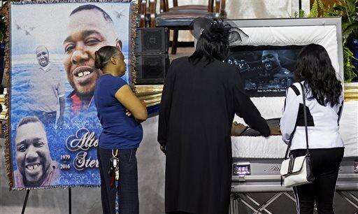 Sterling's body lay in an open casket Friday inside the basketball arena at Southern University, a historically black college in north Baton Rouge. A funeral was to take place later in the morning.
