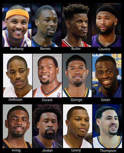While they're not the Dream Team, the U.S. squad in Rio is still an impressive group of players. The team includes: Golden State's Kevin Durant, Klay Thompson and Draymond Green; New York's Carmelo Anthony; Cleveland's Kyrie Irving; Toronto's Kyle Lowry and DeMar DeRozan; Indiana's Paul George; Dallas' Harrison Barnes; Chicago's Jimmy Butler; Sacramento's DeMarcus Cousins and the Clippers' DeAndre Jordan.