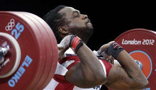 FILE - In this Aug. 3, 2012, file photo, Kendrick Farris of the United States competes during the men's 85-kg. group B, weightlifting competition at the 2012 Summer Olympics in London. Farris, Morghan King, Jenny Arthur and Sarah Robles will represent the U.S. at the Rio Olympics. (AP Photo/Hassan Ammar, File) The Associated Press
