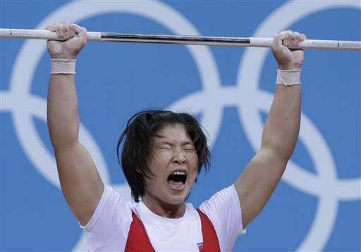 FILE - In this Aug. 1, 2012, file photo, North Korea's Rim Jong Sim competes during the women's 69-kg, group A, weightlifting competition at the 2012 Summer Olympics in London. Rim Jong Sim will be at the Rio Olympics to defend her gold. (AP Photo/Hassan Ammar, File) The Associated Press