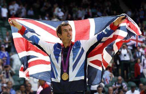 FILE - In this Aug. 5, 2012, file photo, gold medalist Andy Murray of Great Britain waves the British flag during the medal ceremony for the men's singles tennis at the 2012 Summer Olympics in London. Murray will be competing at the Rio Games. (AP Photo/Elise Amendola, File) The Associated Press