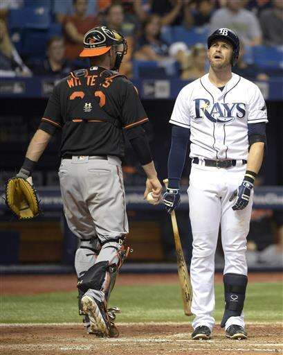 Brad Miller had a one-out double in the ninth off Zach Britton and went to third on a wild pitch. After Evan Longoria was intentionally walked, Britton struck out Logan Morrison and Steven Souza Jr. to earn his 28th save in as many chances.