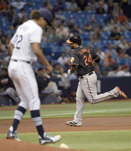Baltimore Orioles' Pedro Alvarez (24) rounds third base after hitting a solo home run off Tampa Bay Rays starting pitcher Chris Archer (22) during the second inning of a baseball game in St. Petersburg, Fla., Friday, July 15, 2016. (AP Photo/Phelan M. Ebenhack) The Associated Press