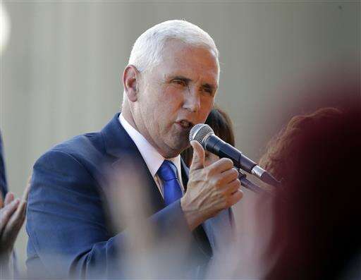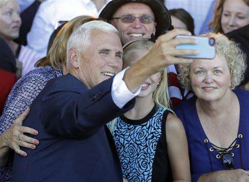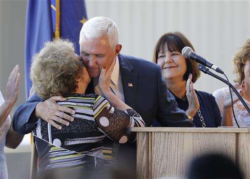 ZIONSVILLE, Ind. (AP) - Now officially part of Donald Trump's presidential ticket, Mike Pence returned home in a private jet Saturday to be greeted by a cheering crowd and the theme music from the movie "Air Force One" blaring over loudspeakers.