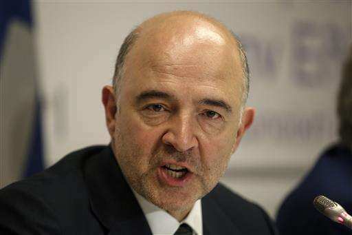European Union Commissioner for Economic Affairs Pierre Moscovici, speaks during a news conference with Greek Finance Minister Euclid Tsakalotos in Athens, Monday, July 18, 2016. Moscovici is on a one-day visit to Athens to hold meetings with the Greek Prime Minister, and ministers of Economy and Labour. (AP Photo) The Associated Press