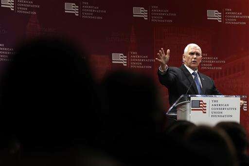 Pence, long a conservative darling, made a surprise appearance Tuesday in front of a powerful conservative lobbying group to vow "that Donald Trump will be a great president of the United States of America because his heart beats with the heart of the American people."