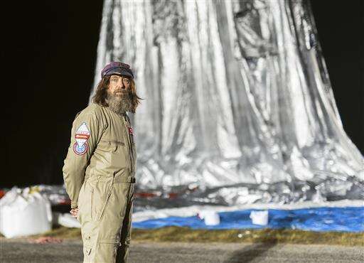 In this Monday, July 11, 2016 photo released Wednesday, July 20, 2016 by Morton, Russian adventurer Fedor Konyukhov stands by his helium and hot-air balloon being inflated before liftoff on his record attempt to fly solo in a balloon around the world nonstop in Northam in Western Australia state. Konyukhov, 65, now flying at more than 6,000 meters (20 feet) above the ground, was battling sleep deprivation, freezing temperatures and ice in his oxygen mask as he nears the end of his record attempt to fly solo around the world nonstop, his son said on Wednesday, July 20, 2016. (Oscar Konyukhov/Morton via AP) The Associated Press
