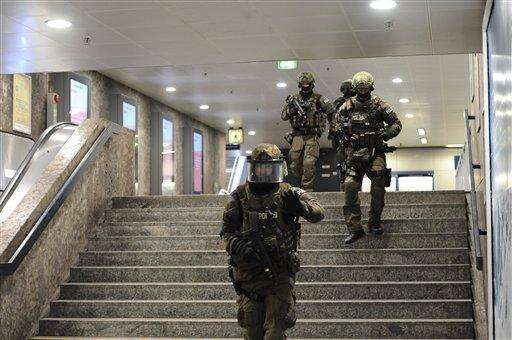 No one is in custody yet. All trains, trams, buses and subways in the city have been shut down during the police operation, and police are urging residents to stay indoors.