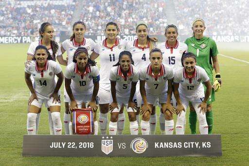 The Costa Rica national team poses for a photo before a women's international friendly soccer match against the United States, Friday, July. 22, 2016, in Kansas City, Kan. (AP Photo/Colin E. Braley)