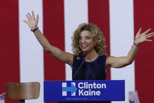 In this Saturday, July 23, 2016 photo, DNC Chairwoman, Debbie Wasserman Schultz speaks during a campaign event for Democratic presidential candidate Hillary Clinton during a rally at Florida International University Panther Arena in Miami. On Sunday, Wasserman Schultz announced she would step down as DNC chairwoman at the end of the party's convention, after some of the 19,000 emails, presumably stolen from the DNC by hackers, were posted to the website Wikileaks. (AP Photo/Mary Altaffer) The Associated Press