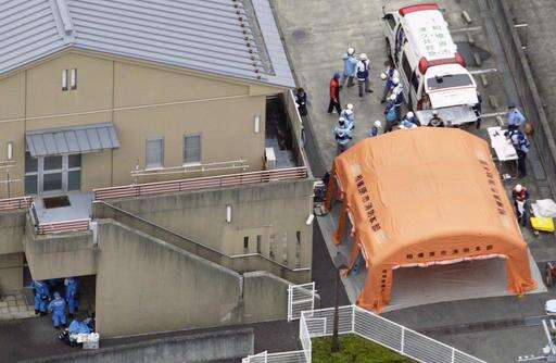 Ambulance crew and police officers are seen outside a facility for the handicapped where a number of people were killed and dozens injured in a knife attack Tuesday, July 26, 2016, in Sagamihara, outside Tokyo. (Kyodo News via AP) The Associated Press