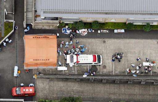 Ambulance crew are seen outside a facility for the handicapped where a number of people were killed and dozens injured in a knife attack Tuesday, July 26, 2016, in Sagamihara, outside Tokyo. (Kyodo News via AP) The Associated Press