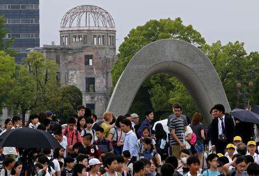 FILE - In this May 26, 2016 file photo, people visit the Hiroshima Peace Memorial Park in Hiroshima, Hiroshima Prefecture, southern Japan. Hiroshima city has asked the developer of âPokemon Goâ to remove the atomic bomb memorial park as a âgymâ location in the popular smartphone game. The city made the request Tuesday, July 26, 2016. It is asking game developer Niantic Inc. to delete the park from the game by Aug. 6, when an annual ceremony is held to remember those who died in the 1945 bombing.(AP Photo/Shuji Kajiyama, File)