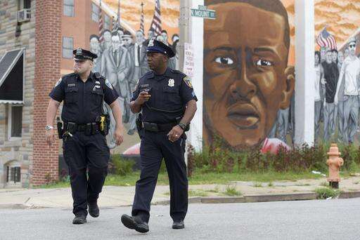 BALTIMORE (AP) - More than a year after a black man suffered a broken neck in a police van, the effort to hold six officers criminally responsible for his death collapsed Wednesday when the city dropped all charges in the case that tore Baltimore apart and exposed deep fissures between the police, prosecutors and the people.