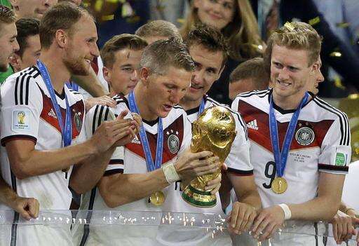 "In Bastian Schweinsteiger a really great one is leaving the national team," German football federation president Reinhard Grindel said. "His name will always remain unforgotten and closely linked to the 2014 World Cup final in Rio, where he showed all his qualities and virtues: top class and absolute dedication."