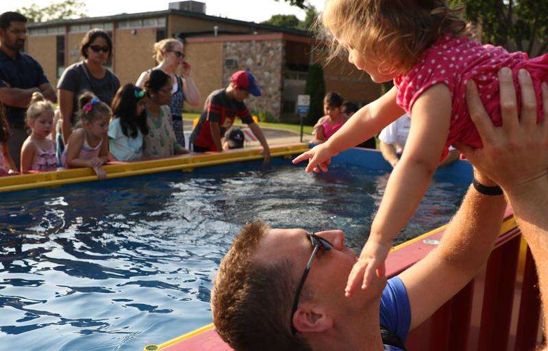 In Schaumburg, police officers, state representatives and fire personnel met with people at Meineke Recreation Center, where there were silly games, contests, sidewalk chalk play, a DJ and an open swim.