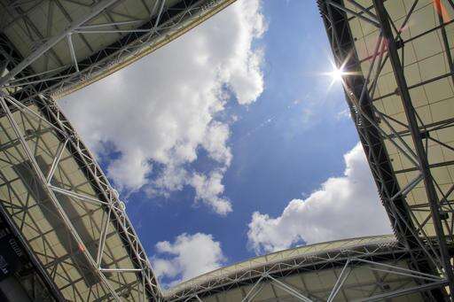 The sun peaks into Arthur Ashe Stadium through the new retractable roof, at the Billie Jean King National Tennis Center, in the Queens borough of New York, Tuesday, Aug. 2, 2016. Mother Nature will no longer be a problem at the U.S. Open as the U.S. Tennis Association unveiled the new retractable roof over Arthur Ashe Stadium. (AP Photo/Richard Drew)