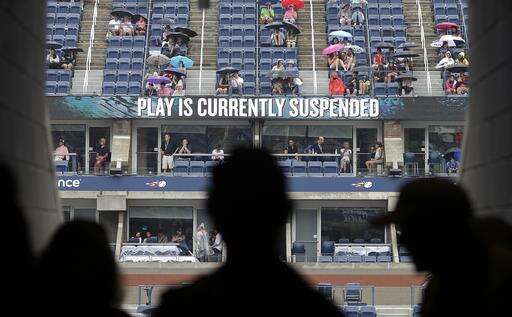 FILE - In this Sept. 2, 2013, file photo, tennis fans wait out a rain delay at Arthur Ashe Stadium during the fourth round of the 2013 U.S. Open tennis tournament in New York. Mother Nature will officially no longer be a problem at the U.S. Open. Tuesday, Aug. 2, 2016, the USTA unveiled the new retractable roof over Arthur Ashe Stadium at the USTA Billie Jean King National Tennis Center. (AP Photo/David Goldman, File)