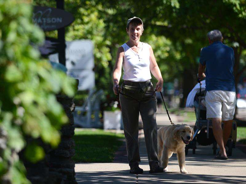 "I started training him using all of the wonderful sights, sounds, smells and people on Third Street," said Meo, a resident of Aurora. "We are out walking up and down Third Street at least four days or nights a week. The response to his smile and charisma has been heartwarming."