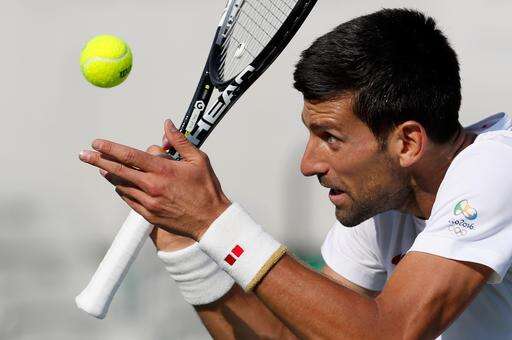 Serbia's Novak Djokovic playfully drops a shot over the net during a practice session on the central court ahead of the 2016 Summer Olympics in Rio de Janeiro, Brazil, Thursday, Aug. 4, 2016. (AP Photo/Vadim Ghirda) The Associated Press