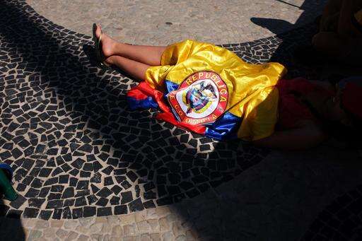 Patricia Lopez, of Columbia, sits with a flag in the shade while waiting for the men's cycling road race to come by along Copacabana beach in Rio de Janeiro, Brazil, Saturday, Aug. 6, 2016. (AP Photo/David Goldman) The Associated Press