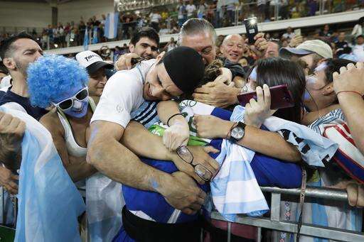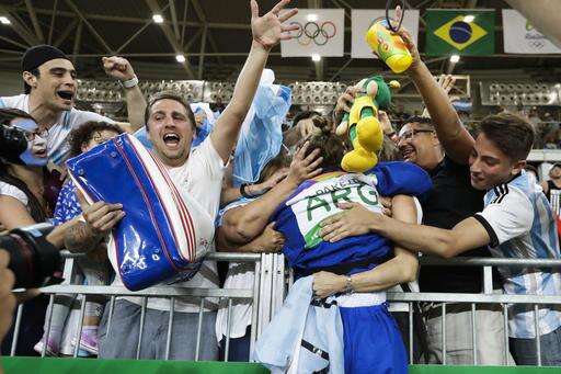 Paula Pareto, ranked third, jumped repeatedly in victory when she defeated South Korea's Bokyeong Jeong in the women's 48-kilogram division, much to the delight of a crowd packed with Argentinians waving their national flag. Pareto climbed into the spectator section afterward to be enveloped not only by giddy fans, friends and family, but numerous flags.