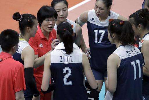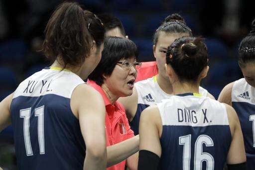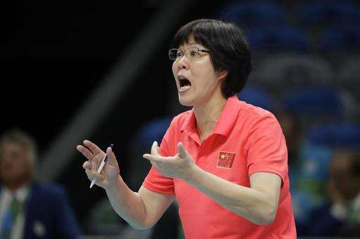 China head coach Lang Ping speaks to her team during a women's preliminary volleyball match against the Netherlands at the 2016 Summer Olympics in Rio de Janeiro, Brazil, Saturday, Aug. 6, 2016. (AP Photo/Jeff Roberson)
