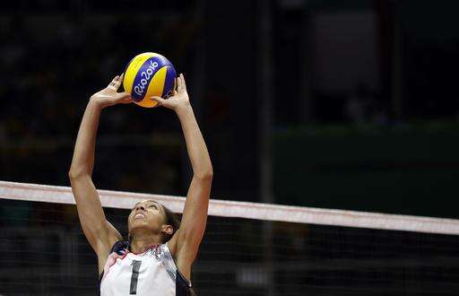 United States' Alisha Glass sets the ball during a women's preliminary volleyball match against Puerto Rico at the 2016 Summer Olympics in Rio de Janeiro, Brazil, Saturday, Aug. 6, 2016. (AP Photo/Matt Rourke)