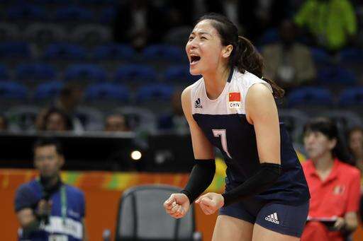 China's Wei Qiuyue reacts after scoring against the Netherlands during a women's preliminary volleyball match at the 2016 Summer Olympics in Rio de Janeiro, Brazil, Saturday, Aug. 6, 2016. (AP Photo/Matt Rourke)