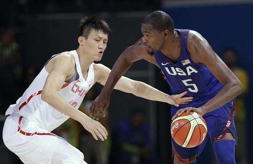 The Chinese got on the board first with a pair of free throws, and it was tied at 4 after a basket by Yi. Then it was nine straight points for the Americans, who closed the first quarter with a 26-6 burst to lead 30-10.