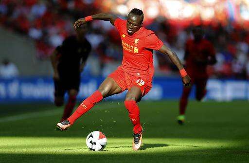 Liverpool's Sadio Mane plays the ball during the International Champions Cup soccer match between Liverpool and Barcelona at Wembley stadium in London, Saturday, Aug. 6, 2016 . (AP Photo/Frank Augstein) The Associated Press
